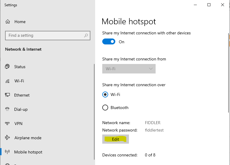 - You can further configure the Mobile Hotspot by right click on the icon: